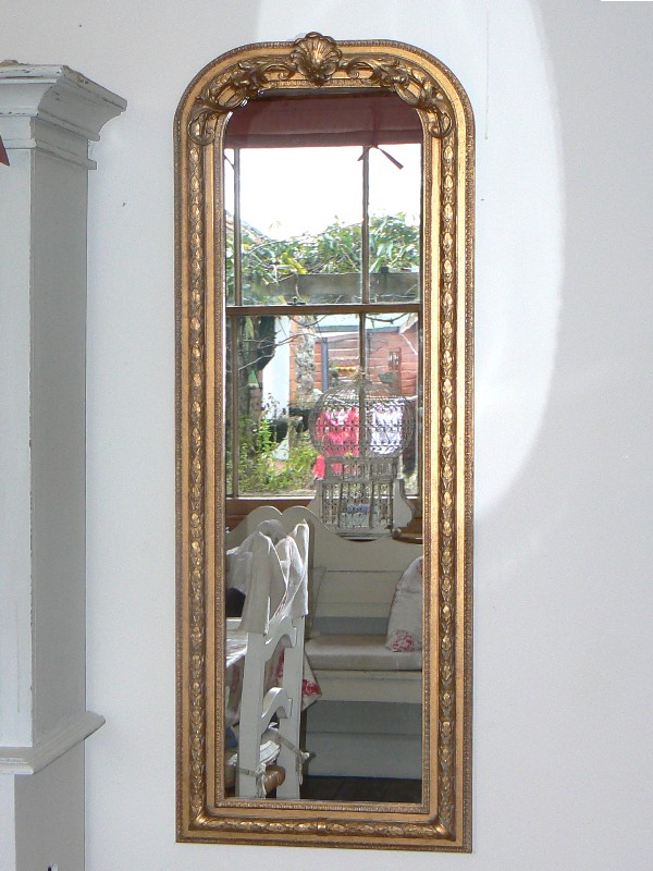 Tel : 01749 670823 - email : info@ornategiltmirrors.co.uk No.50 `Louis Phillipe` dressing mirror - running leaf pattern ( Dark antique pictured ) Standard size : 18" w x 52" high ( 457 x 1320 ) £375.00 ( standard finishes ) - £468.75 ( Dutch gold leaf ) Or with 10% discount using the buy-now buttons.. |